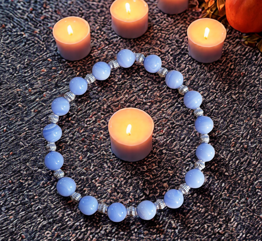 - Blue Lace Agate: Known for its soothing and calming energy, Blue Lace Agate promotes peace and tranquility. It helps alleviate stress, anxiety, and nervous tension, encouraging clear communication and self-expression. This stone is also a great support for emotional healing, bringing balance and a sense of calmness to the wearer.